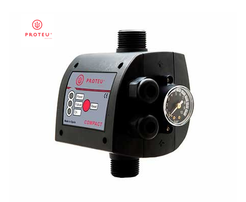 - Sistema de proteção integrado que interrompe a bomba em caso de falta de água