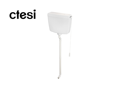 Para aplicação com fixação em posição alta na parede, fornecido com tubo de descarga até 1.60m de altura e puxador para acionamento da descarga.