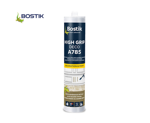 "Bostik A785 HIGH GRIP DECO é um adesivo acrílico, versátil, com elevado poder de agarre inicial, indicado para colagem de ornamentos e painéis de isolamento térmico em interiores. Cura por evaporação da água permitindo uma colagem forte e duradoura."