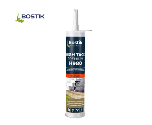 "Bostik H980 HIGH TACK PREMIUM engloba as vantagens do mais alto poder de agarre inicial do mercado, da força extrema de colagem e acrescenta uma nova característica que evita o aparecimento de manchas em superfícies muito porosas ou delicadas como por exemplo pedra natural ou espelhos. Bostik H980 HIGH TACK PREMIUM cumpre as especificações BREEAM relativamente à qualidade do ar interior, no que diz respeito às emissões dos compostos orgânicos voláteis (COV)."