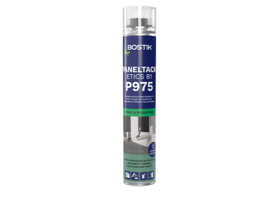 Adesivo em espuma monocomponente, à base de poliuretano, com classificação ao fogo B1, de baixa expansão. Indicado para colagem de painéis de isolamento térmico em fachadas.