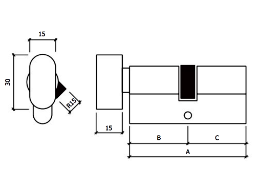 GlobalLock (GLK)︱Canhão de segugrança 10P c/botão (G10B) Características: Número de chaves: 5 10 pinos em duas filas Pino anti-broca Acabamento: Latão Satinado Medidas A B C 60 30 30 Acabamento: Niquelado Mate Medidas A B C 60 100 30 50 30 50 Preços apenas sob consulta Categoria Canhões