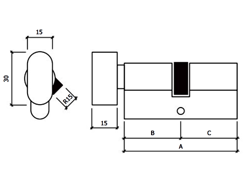 GlobalLock (GLK)︱Canhão de segugrança 5P c/botão (B60) Características: Número de chaves: 3 5 pinos Acabamento: Latão Satinado Medidas A B C 60 30 30 Acabamento: Niquelado Mate Medidas A B C 60 70 30 30 30 40 Preços apenas sob consulta Categoria Canhões