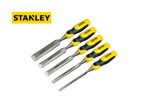 Stanley | Conj. 5 Formões fio biselado Características: Lâmina em liga de aço, retificada e temperada em todas as faces Engraxada para impedir a corrosão Cabo bimatéria grosso para amortecer e absorver golpes Preços apenas sob consulta Modelos Disponíveis 2-16-888 - Conjunto: 6x125mm, 10x131mm, 15x141mm, 20x143mm, 25x143mm 2-16-885 - Conjunto: 6x125mm, 12x141mm, 18x143mm, 25x159mm, 32x159mm Categoria Carpintaria & Construção