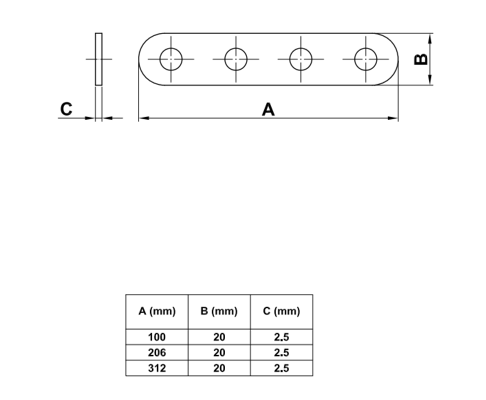 Placa (MOD. 505) Placa de união para estruturas de madeira. Aplicação: uniões pilar-viga, ligações, reparações, etc... Dimensões disponíveis: 100X20X2.5 MM 206X20X2.5 MM 312X20X2.5 MM Preços apenas sob consulta Categoria Construção de estruturas em madeira