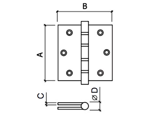GlobalLock (GLK)︱Dobradiça Inox (564-565SRI) Características: Acabamento: Aço inox satinado Com rolamento Medidas A B C D Ref.564 3" Ref.565 5" 102 123 76 76 3 3 14 14 Preços apenas sob consulta Categoria Dobradiças