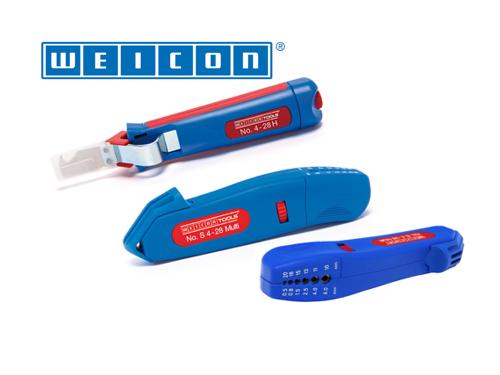 Projetados para decapagem confiável, precisa, segura e rápida para muitos tipos diferentes de cabos. Os descarnadores atendem aos mais altos requisitos de qualidade e são utilizados tanto no artesanato como na indústria. Descarnadores de cabos de alta resistência em plástico reforçado com fibra de vidro. Seguro de usar e compacto, permitindo uma decapagem precisa, rápida e segura de todos os cabos redondos com um diâmetro entre 4 a 28 milímetros. A profundidade de corte da lâmina pode ser ajustada com a ajuda da roda de ajuste na caixa, impedindo danos no condutor presente no interior do cabo, também é possível alternar entre cortes circulares e longitudinais.