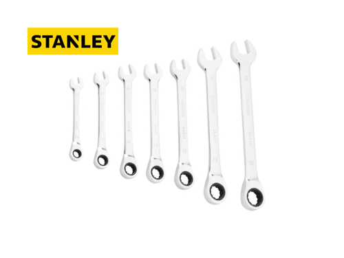 Stanley | Conj. de chaves mistas com roquete Características: STMT82846-0 - Conjunto de 7 peças: 8, 10, 12, 13, 14, 17, 19mm STMT82847-0 - Conjunto de 12 peças: 8, 9, 10, 11, 12, 13, 14, 15, 16, 17, 18, 19mm Preços apenas sob consulta Categoria Mecânica