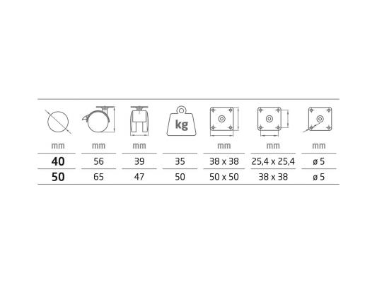 Roda (1504) Cores disponíveis: Preto (Nylon) Medidas disponíveis: 40 Ø - 35 Kg 50 Ø - 50 Kg Preços apenas sob consulta Categoria Rodas