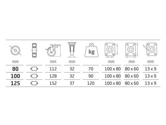 Roda (2523) Cores disponíveis: Preto (Borracha) Medidas disponíveis: 80 Ø - 70 Kg 100 Ø - 90 Kg Preços apenas sob consulta Categoria Rodas