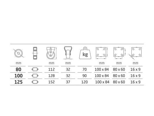 Roda (2526) Cores disponíveis: Preto (Borracha) Medidas disponíveis: 80 Ø - 70 Kg 100 Ø - 90 Kg Preços apenas sob consulta Categoria Rodas