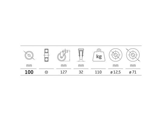 Roda (2531) Cores disponíveis: Cinzento (Borracha) Medidas disponíveis: 100 Ø - 110 Kg Preços apenas sob consulta Categoria Rodas