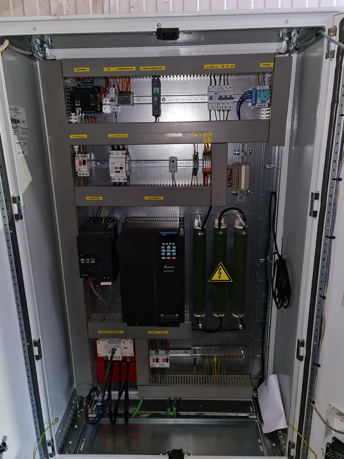 Quadro elétrico desenvolvido para ser montado em obra com a finalidade de controlar uma maquina parte pranchas (cortiça).