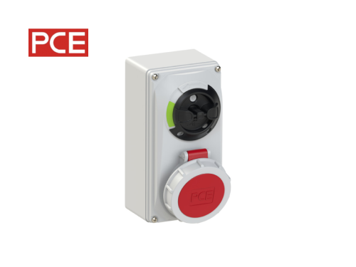 PCE | Tomada fêmea mural c/interruptor de bloqueio 3P+N+T 16A-400V (Série 61) Características: Corrente nominal: 16A Número de polos: 5 Grau de proteção: IP44/54/66/67 Voltagem: 400V Frequência: 50/60Hz Mais informações na ficha técnica do produto | Preços apenas sob consulta Ficha técnica Referencias disponíveis: 6115-6 | Vermelho IP44/54 61152-6 | Vermelho IP66/67 Categoria Tomadas CEE